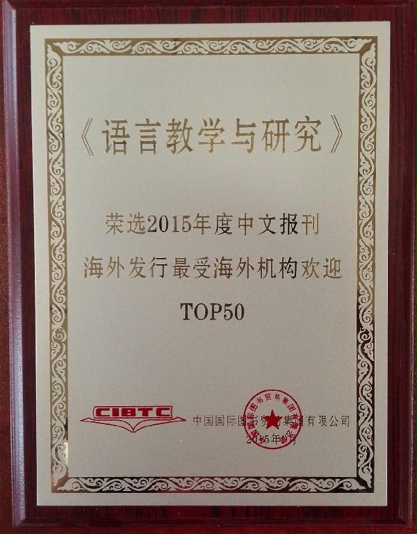 在2015年9月18日举办的“中国报刊发行高峰论坛”上,《语言教学与研究》荣选“2015年度中文报刊海外发行最受海外机构欢迎TOP50”。